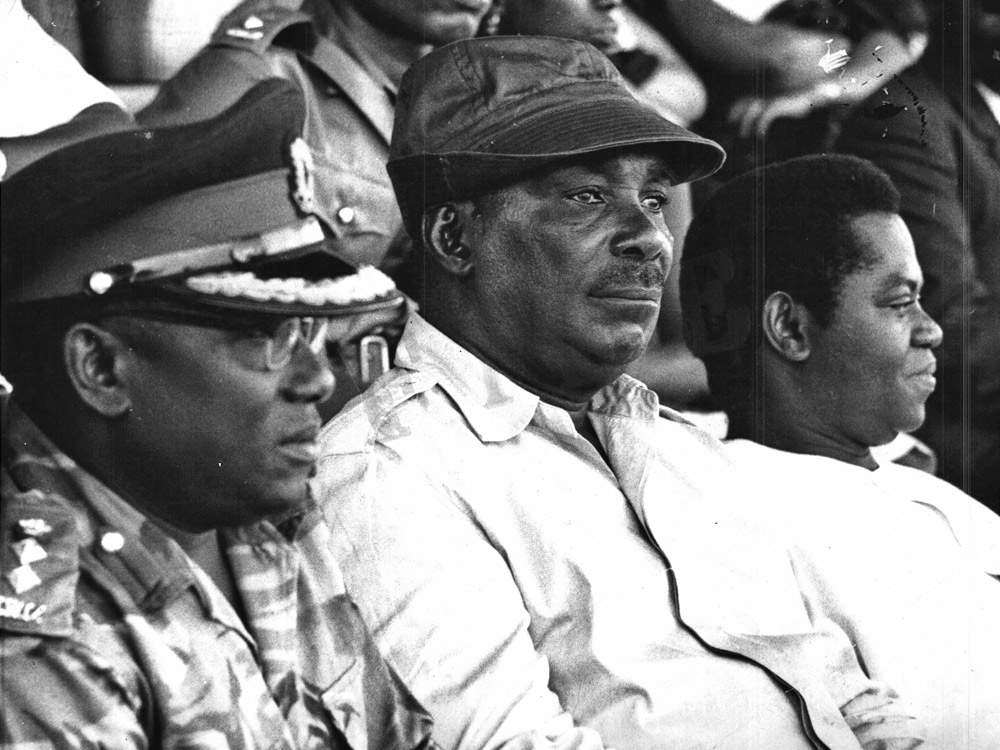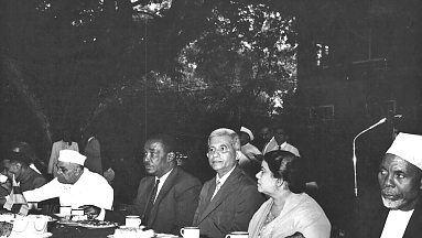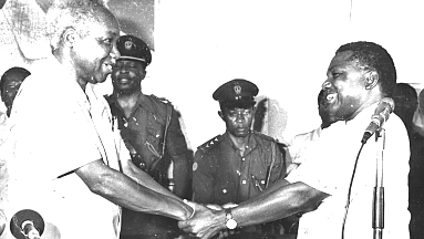 AFRICA,TANZANIA - The late Julius nyerere,the then Tanzanian president shares a light moment with his guests at one of the national holiday celebration.