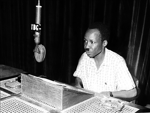 AFRICA,TANZANIA - Mwalimu Julius nyerere is photographed at a radio station giving a speech.