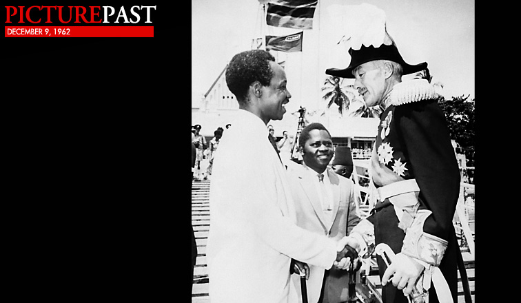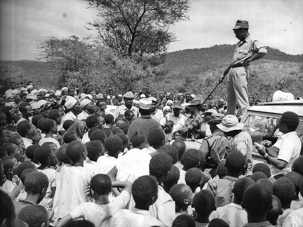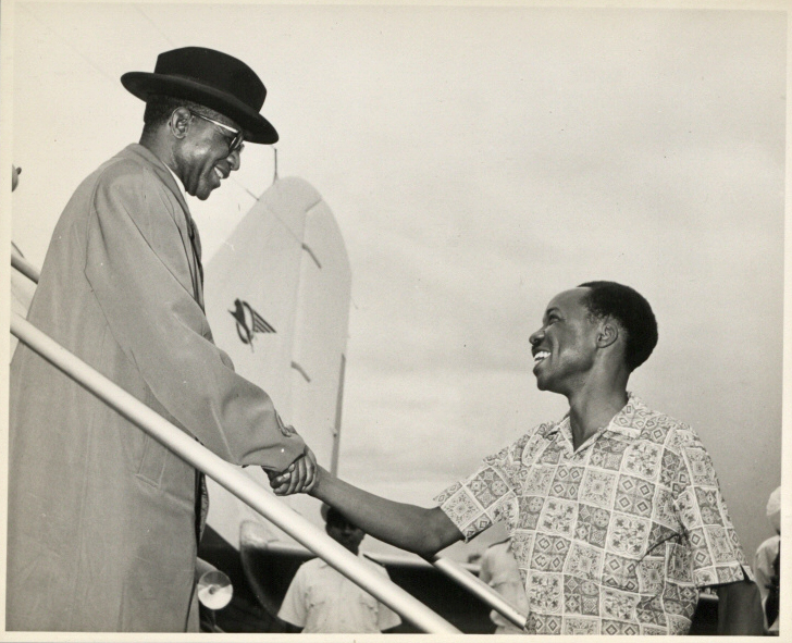 Julius Nyerere, the future president of Tanzania, greeted General Sir Richard Turnbull,