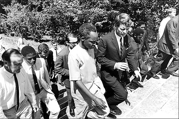 AFRICA,TANZANIA - The Late Tanzanian President Mwalimu Julius Nyerere with Senator Boby Kennedy when he visited Tanzania on his 1966 tour of Africa.