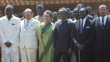 We are a Family - Julius Nyerere and Mama Nyerere with Indira Gandhi at her home, New Delhi, 31 March 1981;